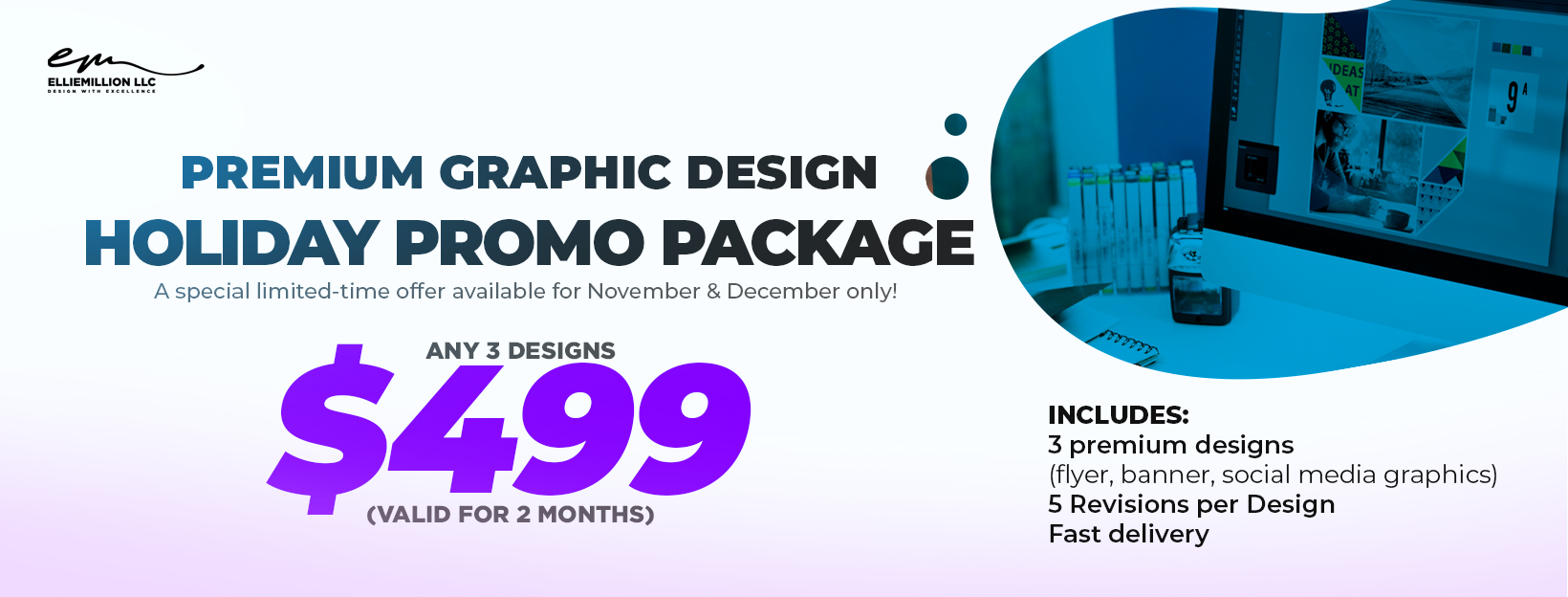 EllieMillion is a graphic design company founded by Eliezer J. Charles, a skilled and passionate designer with 16 years of experience. We specialize in creating innovative and impactful designs that cater to the specific needs of our clients. Our core values are creativity, collaboration, and exceptional customer service.